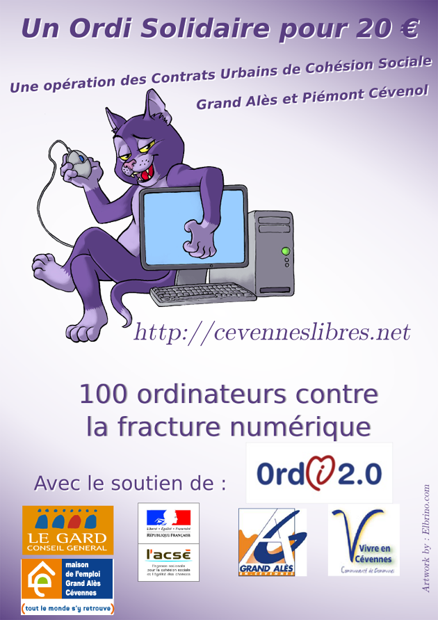 L’ordinateur est pré-configuré avec le système d’exploitation Linux (distribution Ubuntu 10.04 LTS ou Debian Squeeze) et avec un ensemble de logiciels permettant de naviguer sur internet, de faire du traitement de texte, d’utiliser des logiciels éducatifs, d’envoyer un curriculum vitae, de consulter des sites web tel que Pôle Emploi, CPAM, CAF, etc.